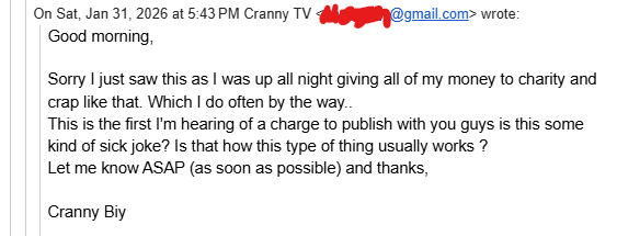 That being said: if you do not pay the $100 dollars to read the Cranny Boy story, we will still attempt to prosecute you for piracy.